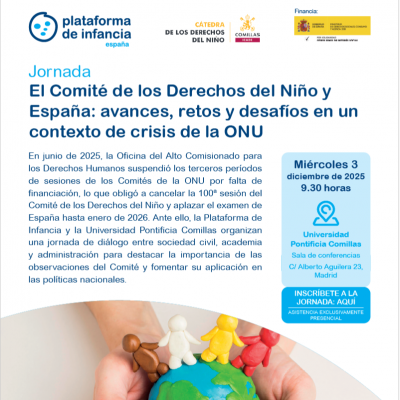 Ves-hiEl 3 de desembre de 2025, PDA Bullying va participar a la jornada “El Comitè dels Drets de l'Infant i Espanya: avenços, reptes i desafiaments en un context de crisi de l'ONU”, organitzada per la Plataforma d'Infància i la Universitat Pontifícia Comillas, a Madrid.