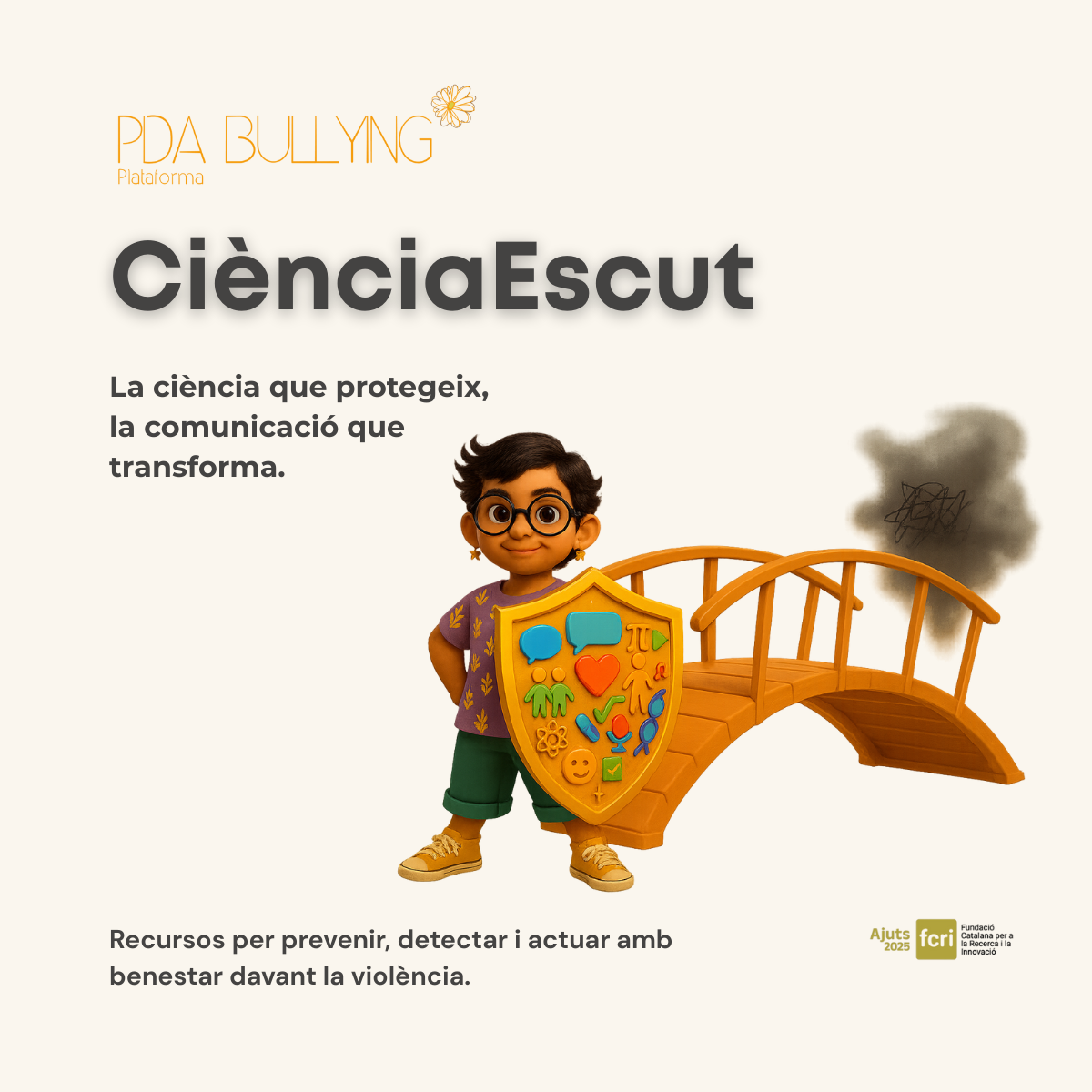 CiènciaEscut és un projecte innovador impulsat per la Plataforma PDA Bullying, el qual compta amb el suport d'un Ajut FCRI 2025, que transforma la recerca científica en recursos propers, emocionals i útils per afrontar el bullying i altres formes de violència entre iguals.