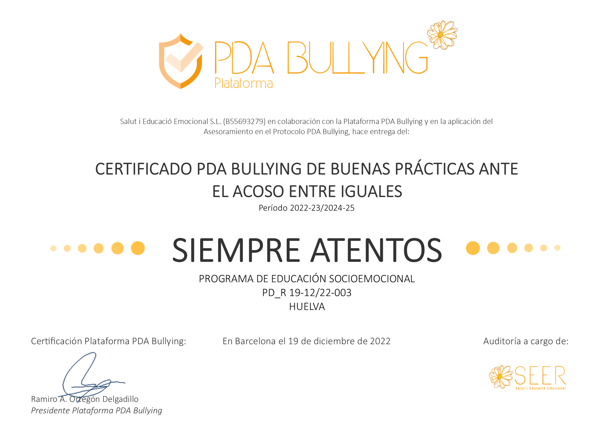 CERTIFICAT PDA BULLYING PREVENCIÓ I DETECCIÓ: PD_R 19-12/22-003