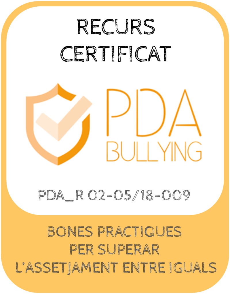 L’estat de certificació atorgat per la Plataforma PDA Bullying valida l'aplicació de bones pràctiques PDA. És específica per l’abordatge del Bullying i esdevé un element de visibilització i altaveu de qualitat pedagògica.