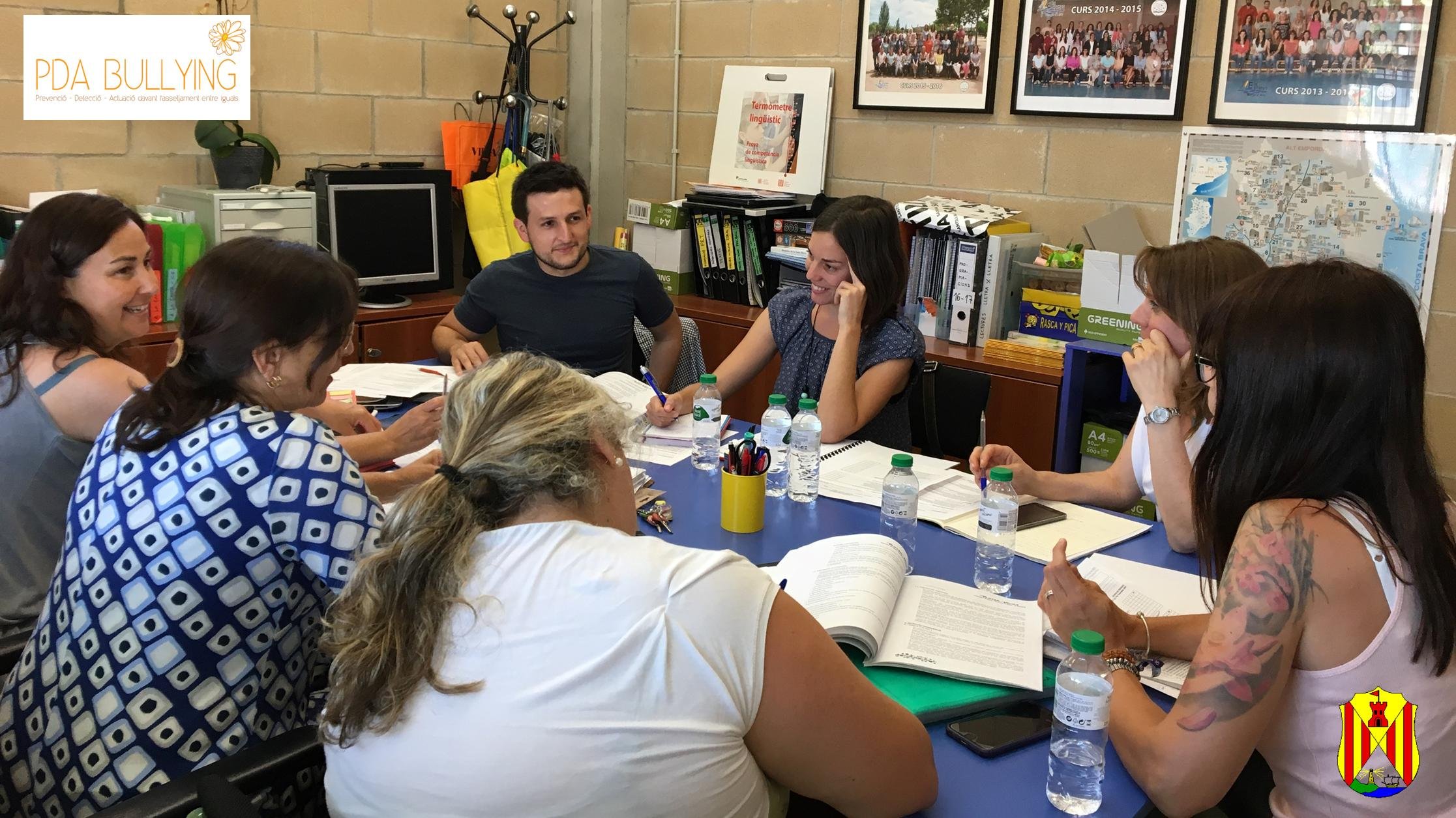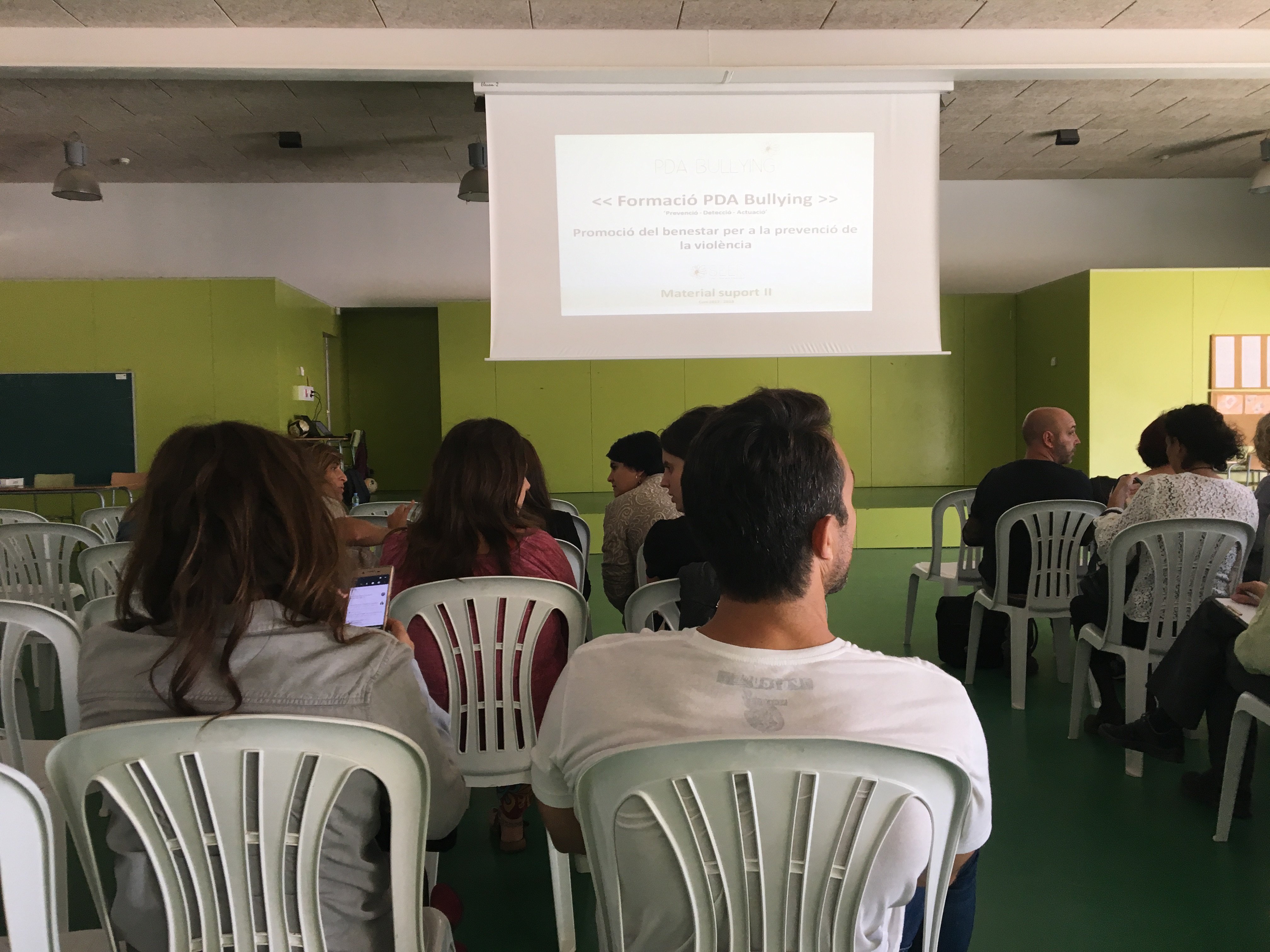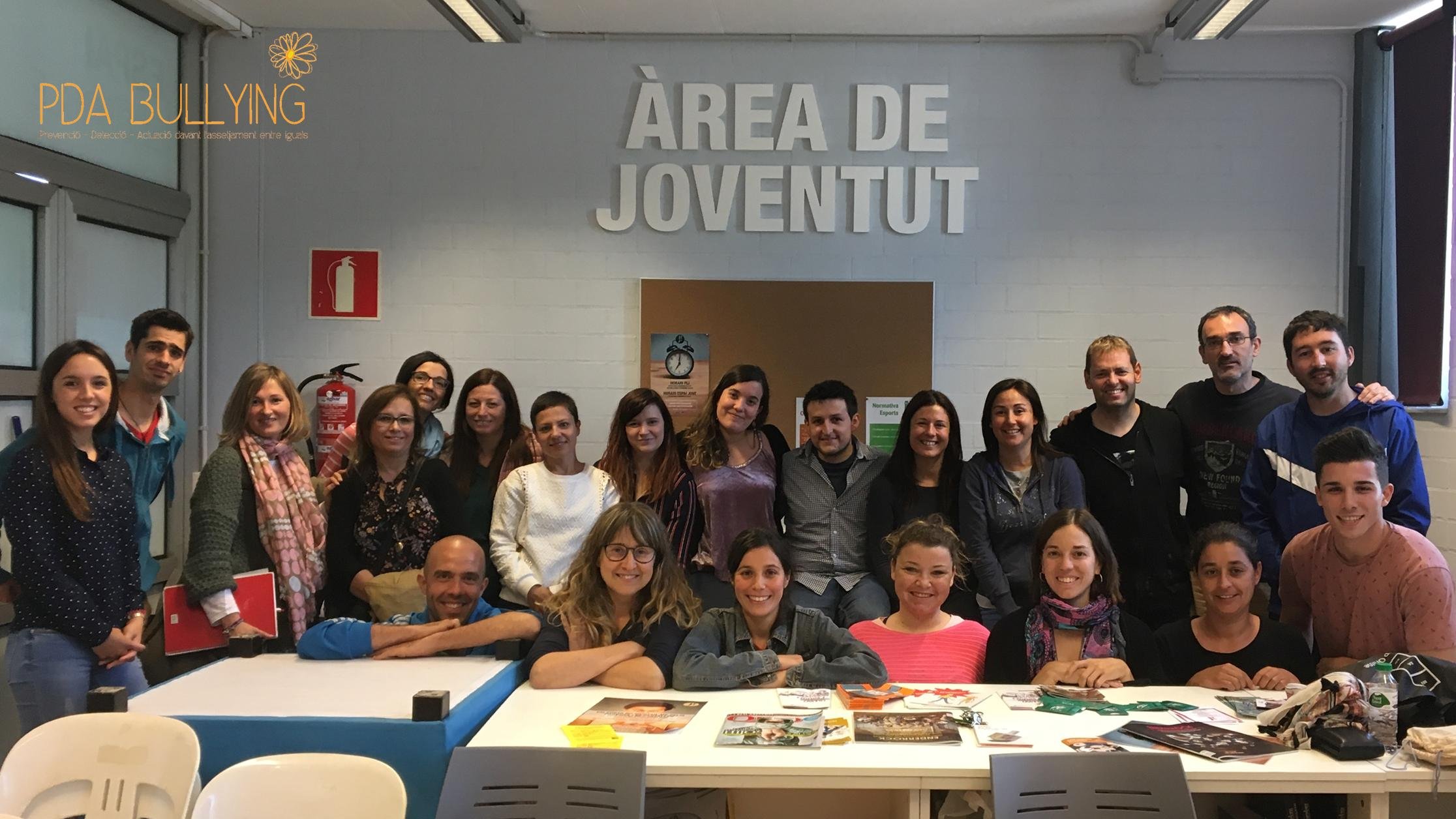 Amb aquesta primera bona pràctica es van iniciar un conjunt de formacions pels professionals, un disseny d'un total de 65 hores de formació sobre Bullying entre l’octubre de 2017 i el juliol de 2018. Han participat els docents del institut, les educadores de la llar d’infants, docents del PFI (programa de formació i inserció) i els professionals i voluntaris de l’aula d’adults; els equips dels serveis d’infància i joventut; representants de la policia local i Mossos d’Esquadra; els monitors/es d’entitats esportives; algunes psicòlogues d’organitzacions com Càrites en el suport i reforç escolar; també psicòlogues privades del municipi; educadors/es socials de diferents projectes impulsats des del Centre Cívic, així com la tècnica de participació ciutadana i responsable del projecte de suport a les Associacions; professionals administratives d’àrea; psicòlogues, treballadores socials i educadores socials de Serveis de Benestar Social; i professionals de biblioteques.