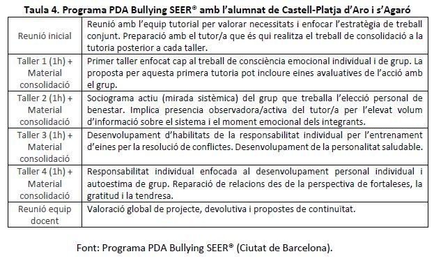 També podeu consultar l'article "L’EDUCACIÓ EMOCIONAL ALS AGENTS COMUNITARIS DE CASTELL-PLATJA D’ARO, UN FACTOR CLAU EN LA TRANSFORMACIÓ DE L’ACOMPANYAMENT A LA INFÀNCIA I L’ADOLESCÈNCIA" presentat a les XV Jornades Educació Emocional (2019): La Formació de l'educador/a en Educació Emocional, amb la finalitat de divulgar les bones pràctiques realitzades al territori, en aquest cas, en l’àmbit de la provenció utilitzant l'educació emocional com a factor protector per superar el bullying.