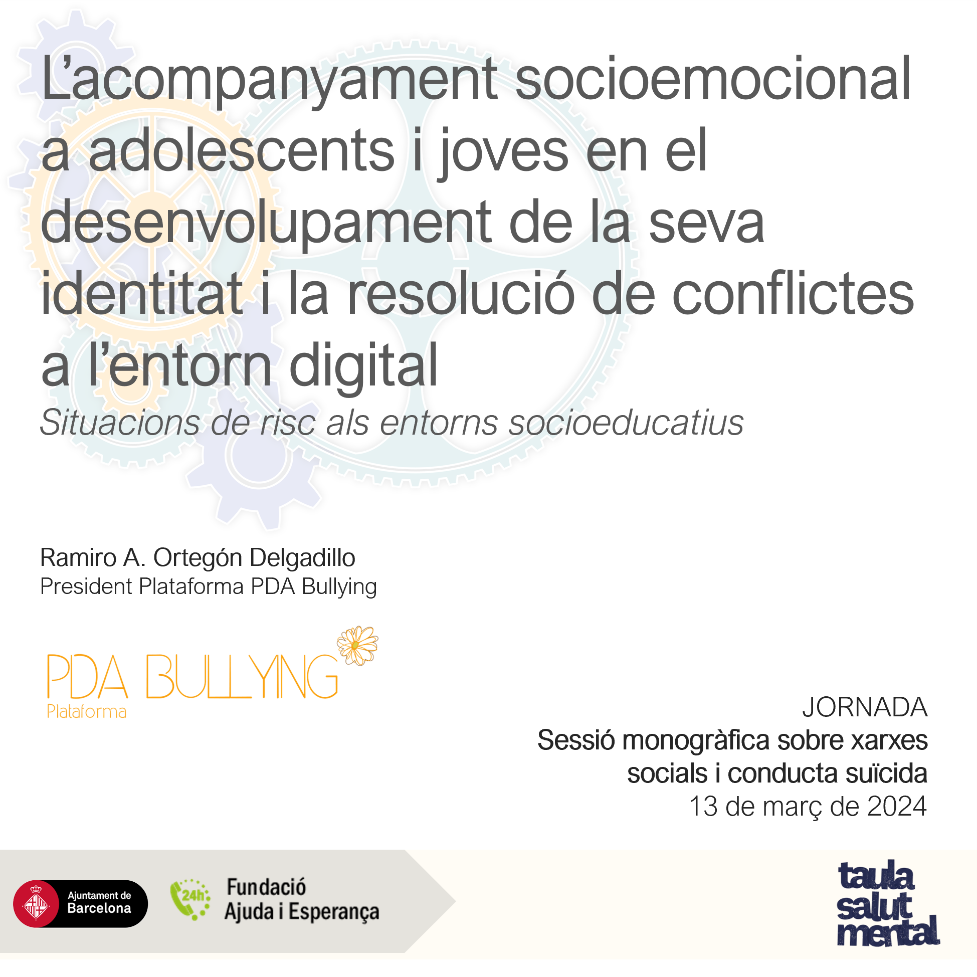 Ramiro Ortegón participa en nom de SEER i PDA Bullying en la sessió monogràfica sobre xarxes socials i conducta suïcida organitzada per la XPRECS (Xarxa per la Prevenció de la Conducta Suïcida), dinamitzada per la Taula Salut Mental BCN a la seu de la Fundació Ajuda i Esperança.
