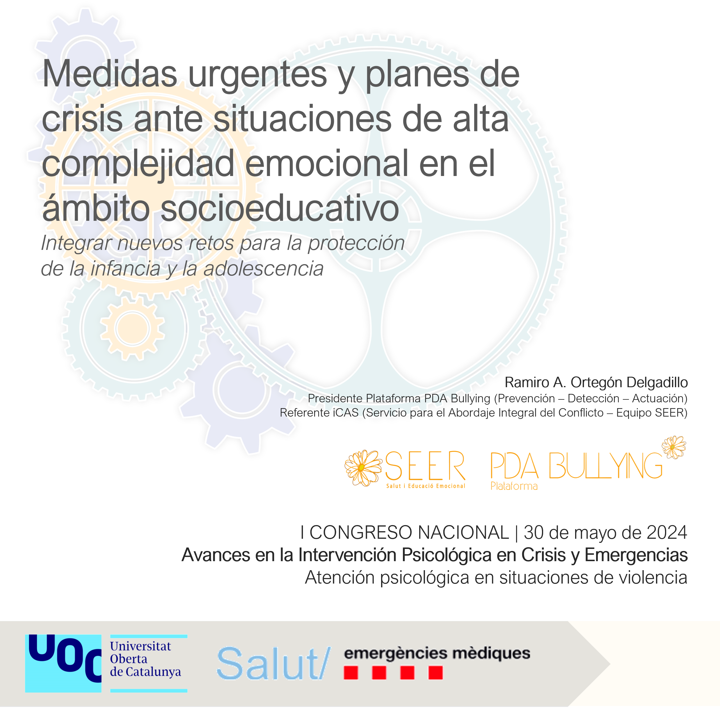 - Medidas urgentes y planes de crisis ante situaciones de alta complejidad emocional en el ámbito socio-educativo - integración de nuevos retos para la protección de la infancia y la adolescencia - Ramiro Andrés Ortegón Delgadillo, Referente de SEER y Presidente de la Plataforma PDA Bullying.