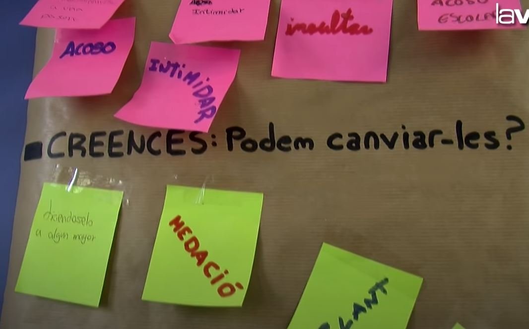 Aquells adolescents que teníem davant eren els que millor coneixien la realitat del centre, i també era molt necessari que fossin ells i elles els i les que se sentissin que estaven sent els que estaven portant la situació de violència i malestar generada pel bullying cap al benestar. És per això que una de les propostes d’un dels tallers era que treballessin conjuntament sobre què podien fer ells i elles per a) Prevenir, b) facilitar la Detecció, i c) mirar d’Aturar una situació de bullying i que es plantegessin d) què podien fer ells i elles per reparar o restaurar el mal causat encaminant-lo cap a una situació de benestar un cop ja havia estat detectat i aturat un cas de bullying.
