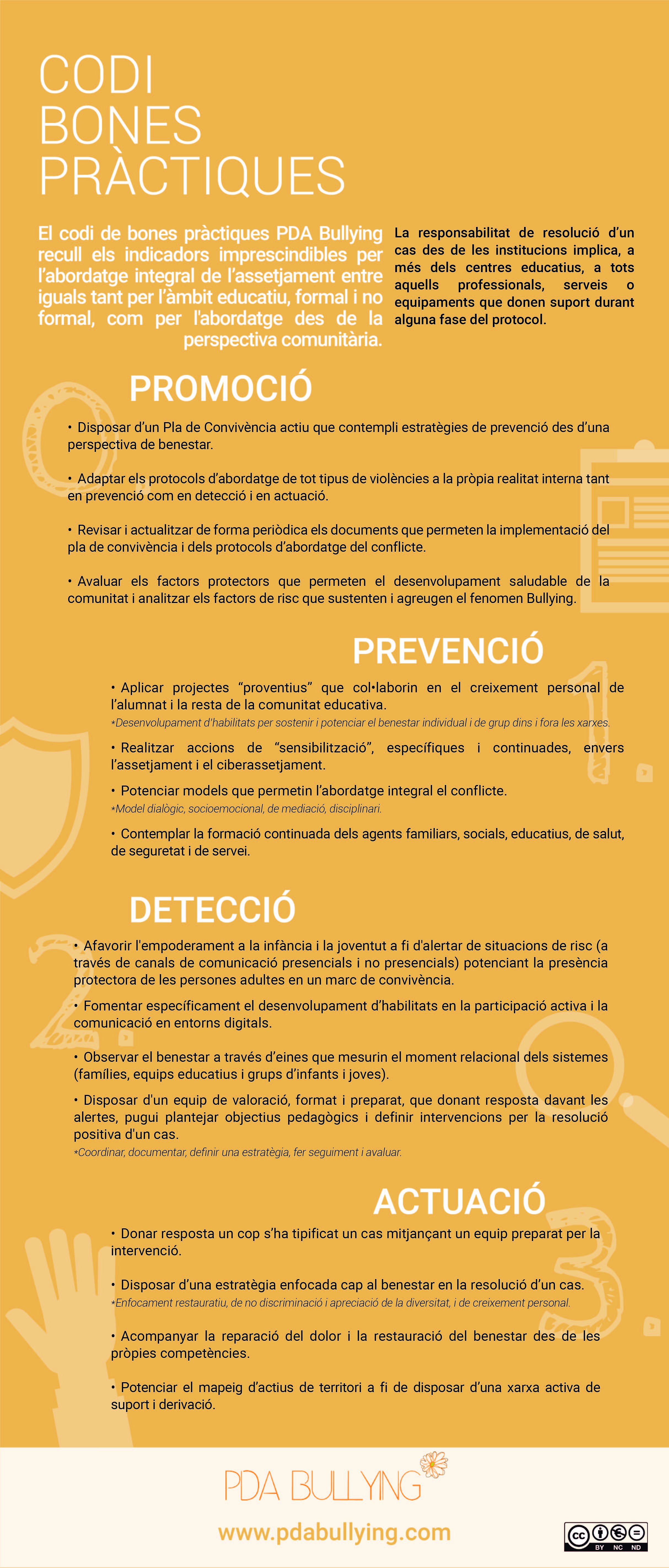 Un aspecte prioritari del pla d'acció de l'Agenda 2030 és la protecció dels nens, des d'un plantejament integral i reformista de la legislació de protecció a la infància, reforçant els instruments dels poders públics en la prevenció i lluita contra la violència infantil. Per això, el Codi de bones pràctiques que plantegem des de la plataforma col·laborativa PDA Bullying es basa en un protocol propi que proposa vuit fases d'aplicació que poden resultar en si mateixes un sistema de verificació d'altres protocols aplicats a nivell territorial en les Comunitats Autònomes i/o municipis, tant del bullying, com d'altres formes de maltractament. Totes aquestes dimensions han de ser abordades des dels protocols, abordar-les totes permet obrir i tancar un circuit PDA de manera integral.