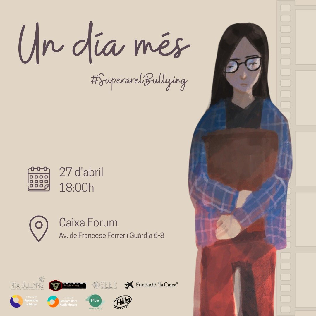 Gràcies al suport de CaixaForum Barcelona (Aula 3), Av. de Francesc Ferrer i Guàrdia, 6-8, el 27 d'abril a les 18h organitzem la presentació del projecte amb la projecció privada del curt "Un dia més", així com l'inici de la campanya de sensibilització que estem construint de forma col·laborativa des de la Plataforma PDA Bullying, tot plantejant solucions per #SuperarElBullying, amb la intenció que sigui quelcom viu i dinàmic obert a la participació d'entitats i persones que vulguin sumar amb les seves idees i aportacions, donant així inici amb motiu del 2 de maig, Dia Internacional contra el Bullying.