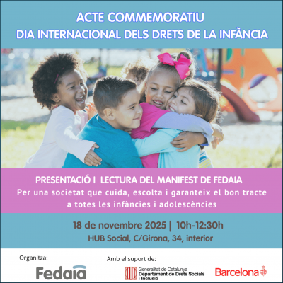 Ves-hiAmb motiu de la Jornada commemorativa del dia mundial dels drets de la infància, FEDAIA (entitat adherida) presenta el "Manifest de la FEDAIA pel Dia Internacional dels Drets de la Infància 2025 per una societat que cuida, escolta i garanteix el bon tracte a totes les infàncies i adolescències"