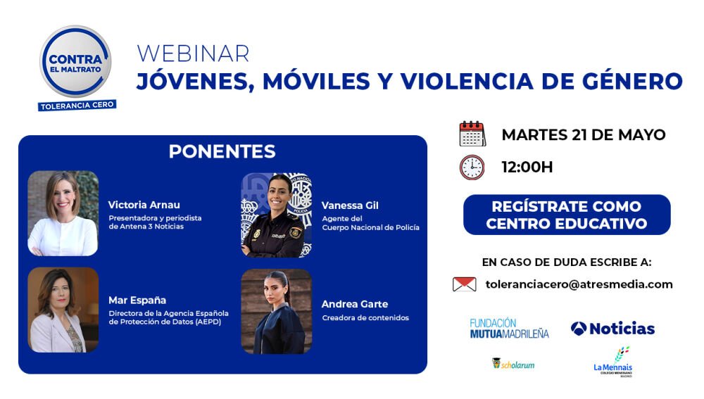 En el marc de la campanya "Contra el Maltrato, Tolerancia Cero", impulsada per Antena 3 Noticias i la Fundación Mutua Madrileña des de 2015, es va organitzar un webinar el 21 de maig de 2024, adreçat a instituts i centres educatius que vulguin connectar-se i que formin a joves d'entre 13 i 16 anys. Al webinar de 2023 van assistir-hi més de 200 instituts i 10.000 alumnes de centres d'Educació Secundària d'Espanya. Inclou macroestudis anuals sobre violència de gènere.