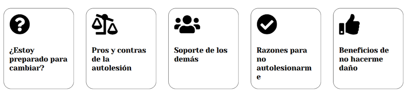 Dins del marc de l’acompanyament a les persones, el grup d’estudi i tractament de l’autolesió ha desenvolupat un banc d’estratègies que ofereixen a totes aquelles persones que ho puguin necessitar. A continuació us expliquem que hi podeu trobar i com està organitzat.
