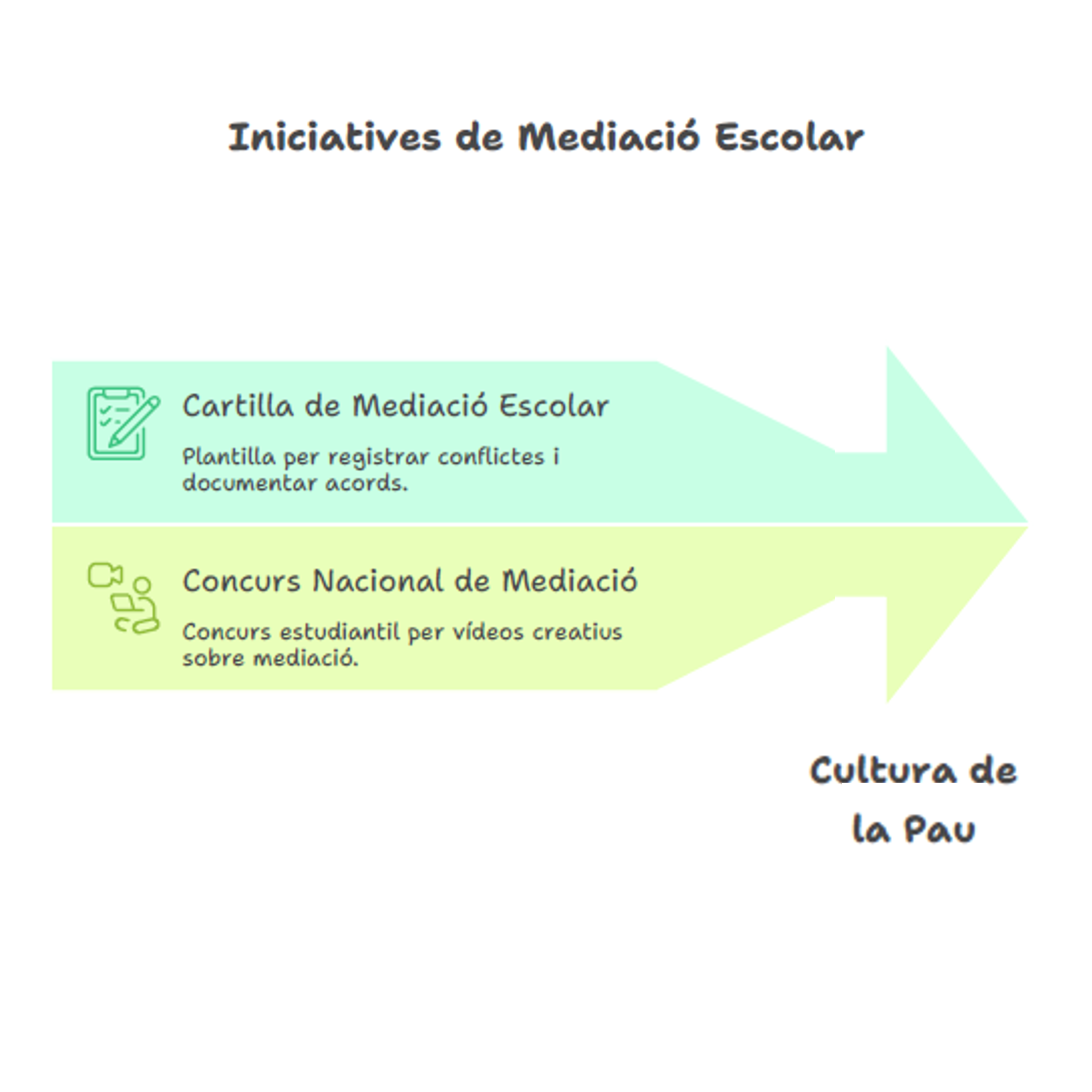Per altra banda, també compta amb el Concurs Nacional de Mediació Escolar, que és una proposta on estudiants de tot el país elaboren vídeos creatius (reels, i formats curts) que promouen la cultura de la pau i la resolució de conflictes. Aquesta és una manera visual i participativa de donar vida al concepte de mediació.