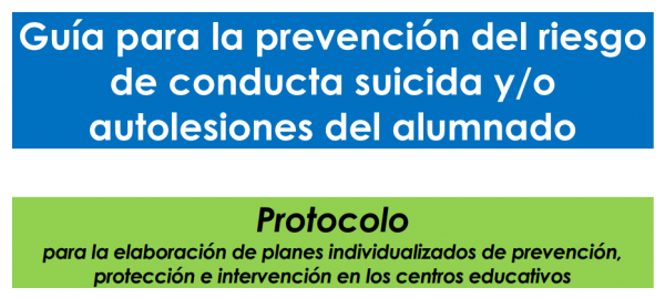 Protocol per a l'elaboració de plans individualitzats de prevenció, protecció i intervenció als centres educatius enfocat al risc de conducta suïcida i/o autolesions de l'alumnat. Una versió revisada al març del 2023 per part de la Subdirecció General de la Vicepresidència, Conselleria d'Educació i Universitats de la Comunitat de Madrid.