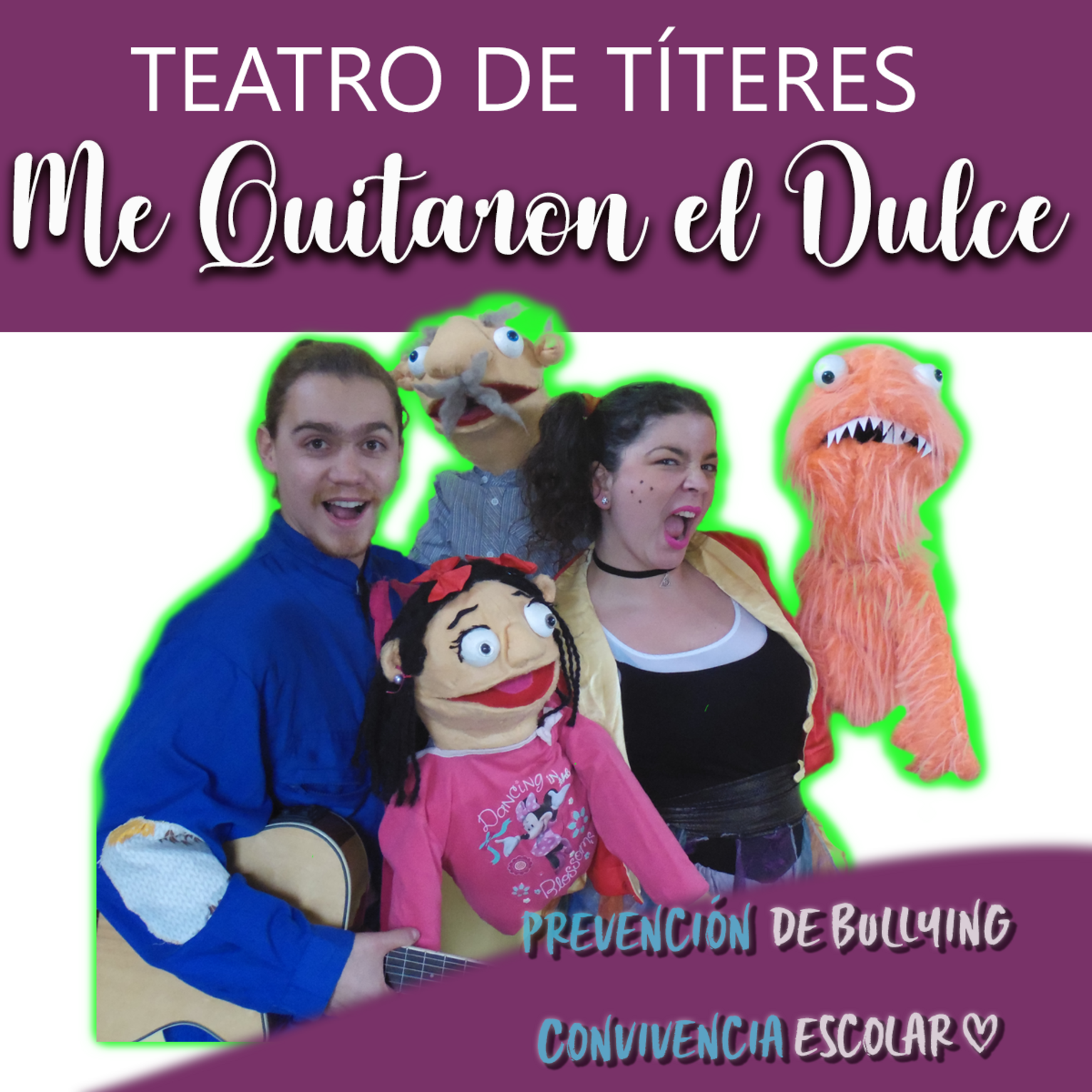Teatro Cultura presenta la seva obra de titelles "Me Quitaron el Dulce" en prevenció de bullying, a aquesta els nens i nenes es troben amb una situació que caracteritza una conducta inadequada i que, amb l'ajuda de tots els infants, s'aconsegueix canviar. A aquesta història, dedicada a nens i nenes des d'Infantil fins a 4t de primària, ells esdevenen els herois, ja que amb la seva participació poden aprendre a tenir un adequat comportament amb els seus iguals.