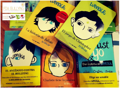 R. J. Palacio és l’escriptora que ens regala Wonder, una genial lectura a partir de 10 anys que ens permet un espai amic per parlar de Bullying amb els nostres alumnes, fills/es, companys/es, etc. És una saga de llibres que explica una mateixa història d'assetjament escolar, però des de diferents perspectives. Cada mirada és un personatge diferent.