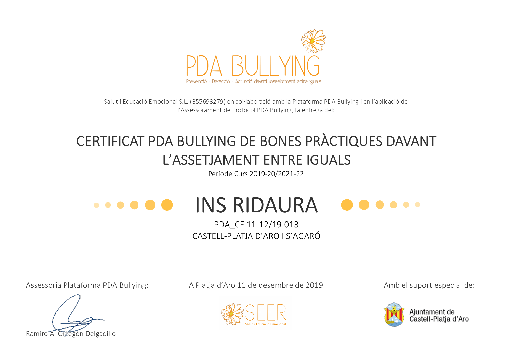 Assessorament Protocol PDA Bullying amb el Suport de: