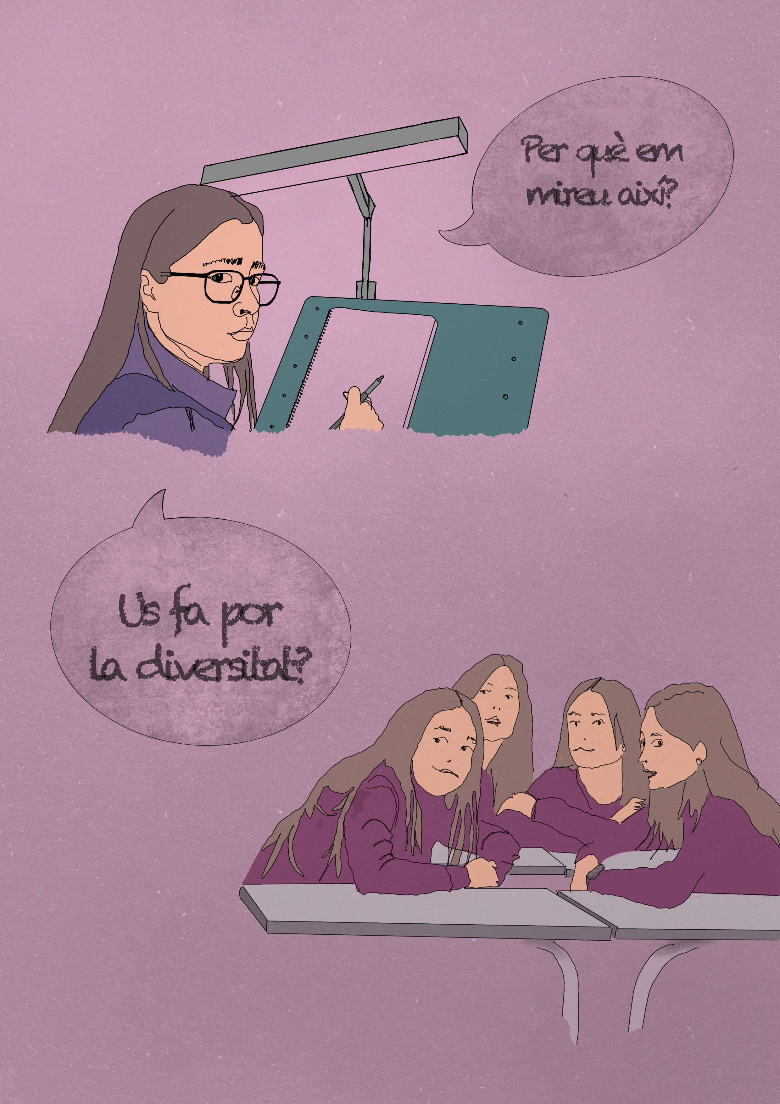 Núria Farús i Gubern fue la ganadora del concurso de ilustración #Undíamás por #SuperarelBullying con una obra que, según ella misma explica, se basa en la idea de que, aunque el bullying es un problema para la persona que lo sufre, el problema de fondo del acoso radica en la persona que lo ejerce.