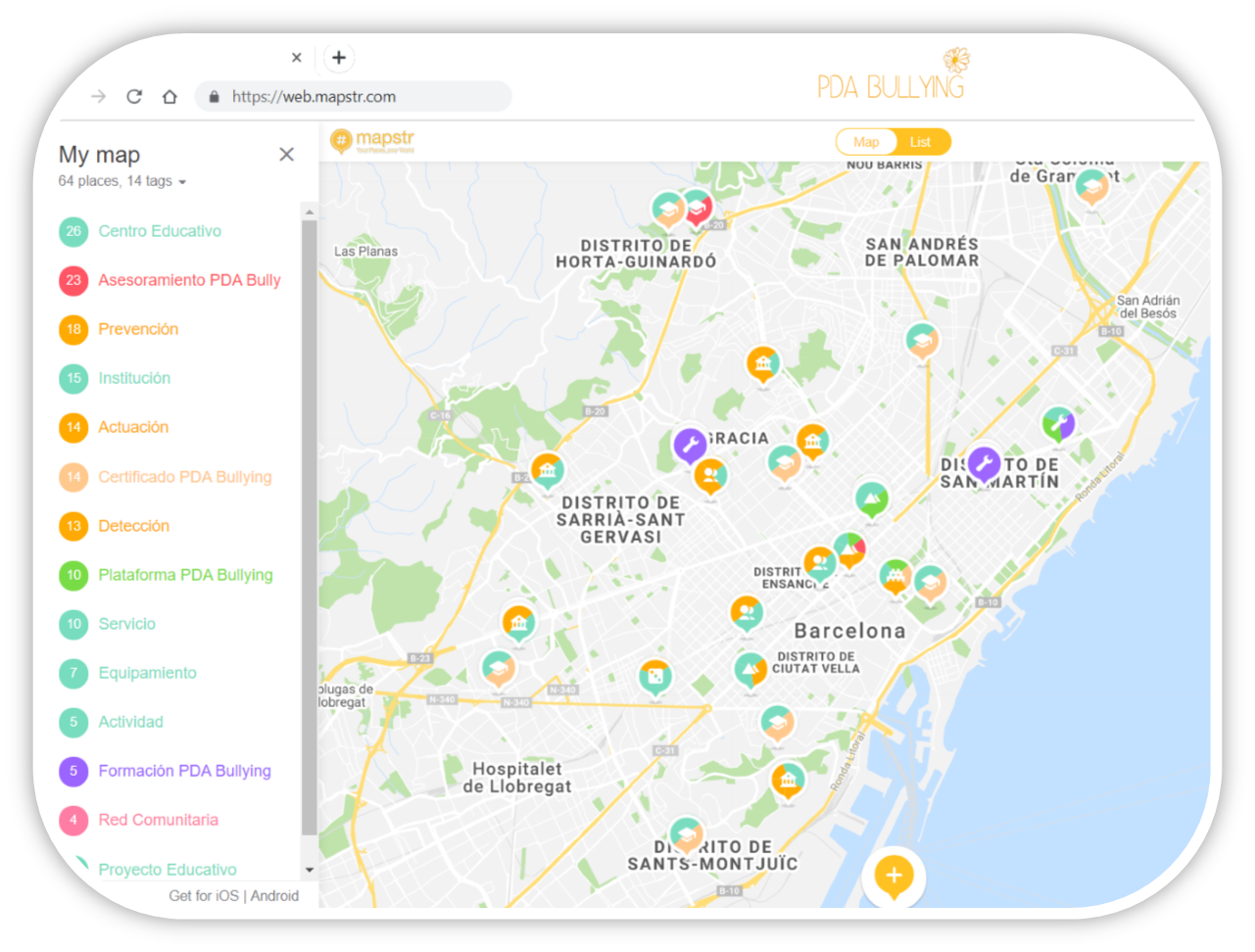 Accede a través de Mapstr haciéndote amigo/a de @pdabullying (Web | iOS | Android)