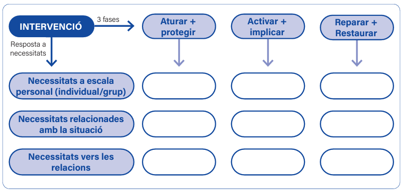 En la Jornada se busca centrar y orientar los aprendizajes en el ámbito formativo hacia la respuesta en un nivel de intervención. Este proceso se desarrollará en tres fases (desde la pausa inicial, logrando un reenfoque pedagógico de la situación, hasta la reparación), apostando por una perspectiva sistémica que incluirá a los profesionales, las familias y los niños/jóvenes implicados.