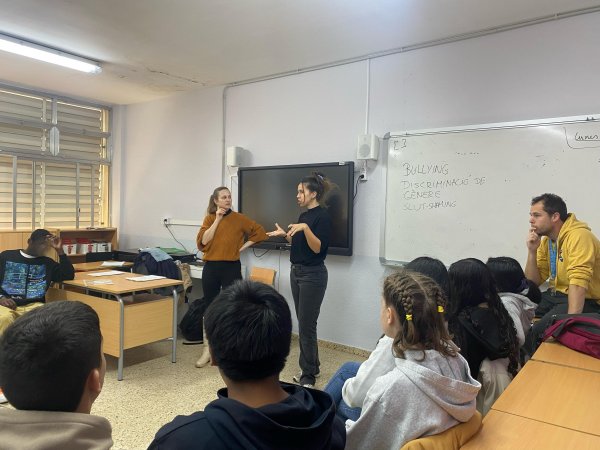 Uno de los grupos asistentes a la función fue el alumnado de 3º y 4º de ESO del Instituto Escuela Gornal, y para dar continuidad a esta experiencia, el pasado miércoles 19 de febrero, dos de las actrices protagonistas dinamizaron un taller con estos grupos. A través de dinámicas participativas y análisis de escenas de la obra, el alumnado pudo reflexionar sobre situaciones de bullying y violencia de género, tomar conciencia de sus roles dentro del grupo y explorar formas de prevención. Aaron Ajoku, facilitador de Equipo SEER, estuvo presente en el taller como figura de apoyo, velando por el buen desarrollo de la actividad, reforzando los objetivos educativos del taller y dando un feedback posterior para acabar de aterrizar este taller piloto y facilitando que se pueda volver a repetir la experiencia.