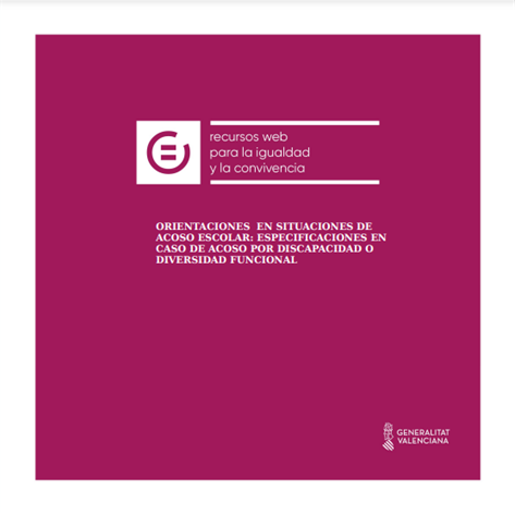 Guía Generalitat Valenciana, 2019 Orientaciones en situaciones de acoso escolar: discapacidad o diversidad funcional |