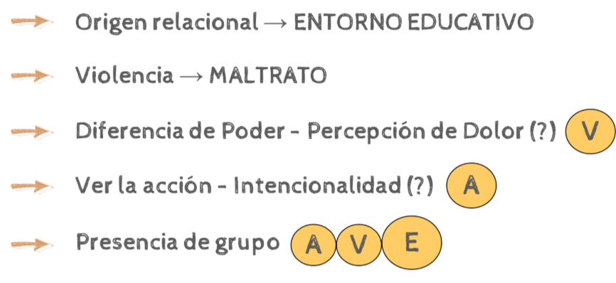 Un maltrato basado en la persecución moral y/o física, siempre psicológica, que nace en entornos educativos donde uno o más niños/as o jóvenes ejercen abuso de poder sobre otro.