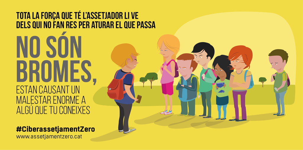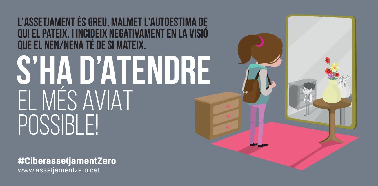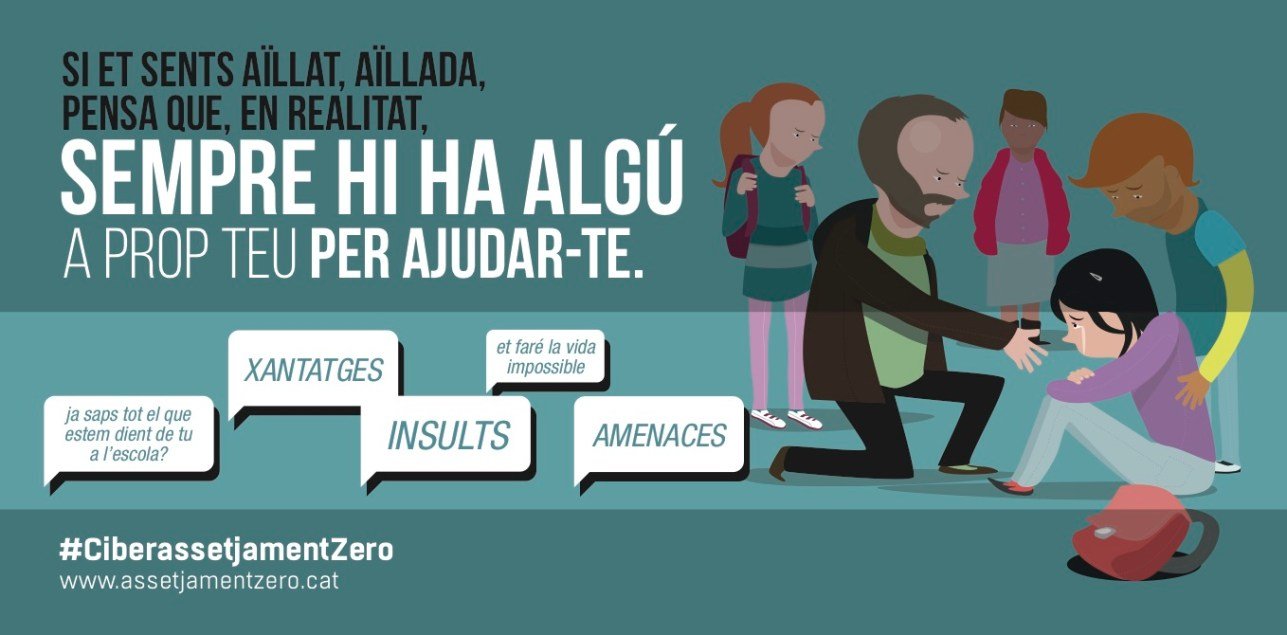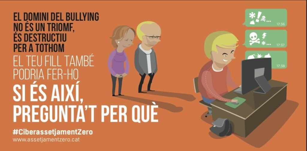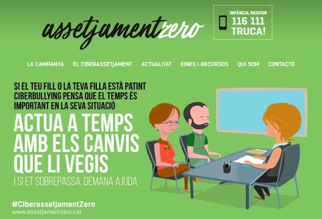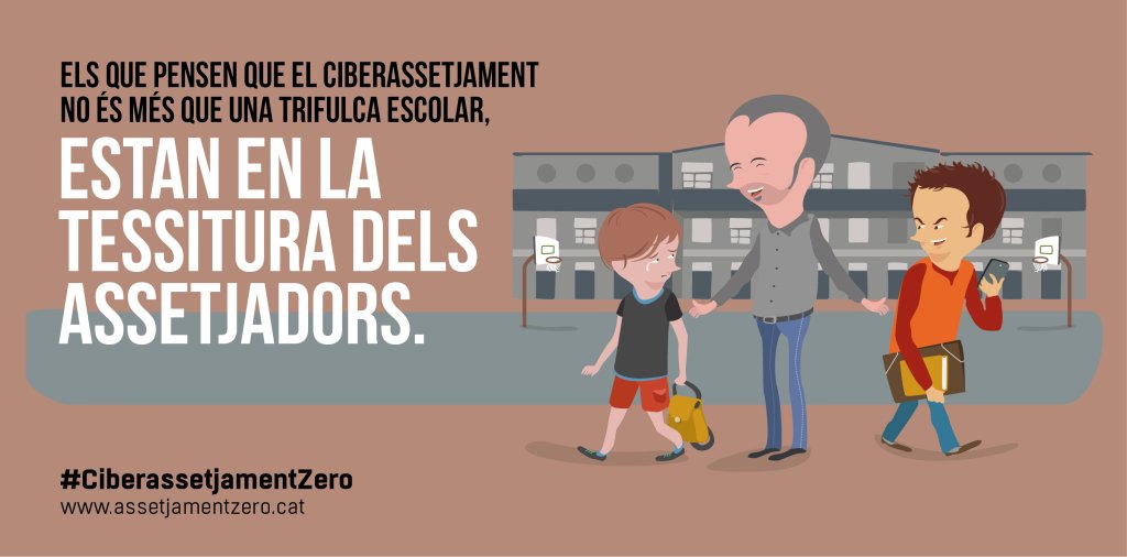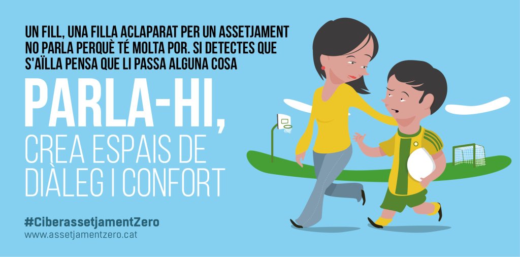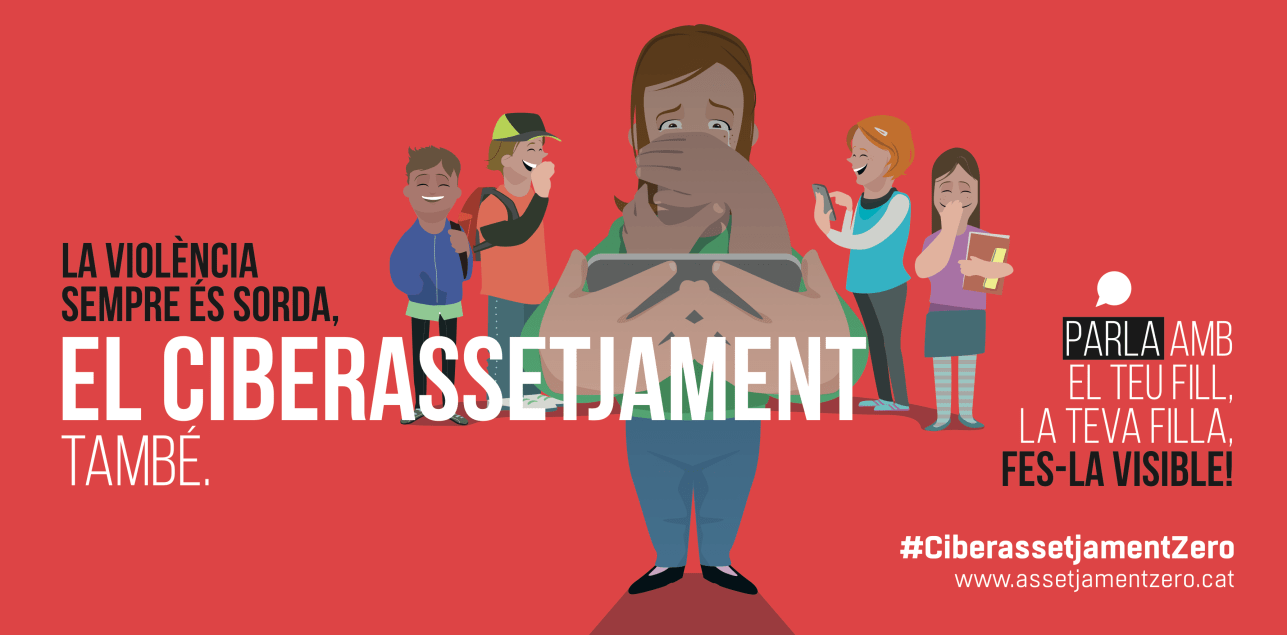 La campaña de sensibilización #CiberassetjamentZero está dirigida a las familias y a la sociedad en general, impulsada por las 6 federaciones de AMPA de Cataluña: FAPAC, DINCAT, AFAEC, FAPAES, FAPEL y CCPAC, con la colaboración del Departamento de Enseñanza de la Generalitat de Cataluña. Consta de varias viñetas con mensajes claros y directos, que ayuden a todas las partes.