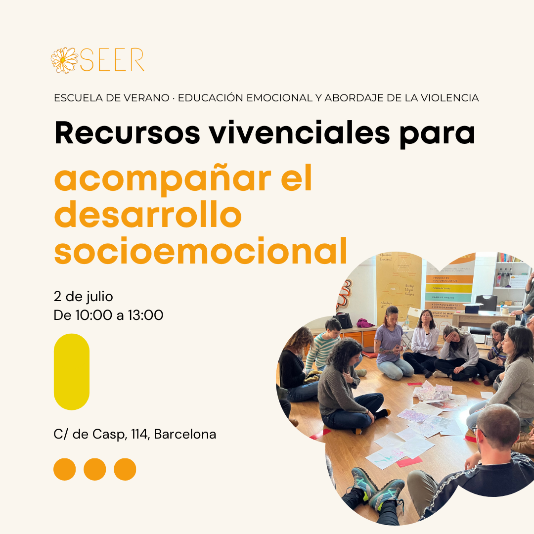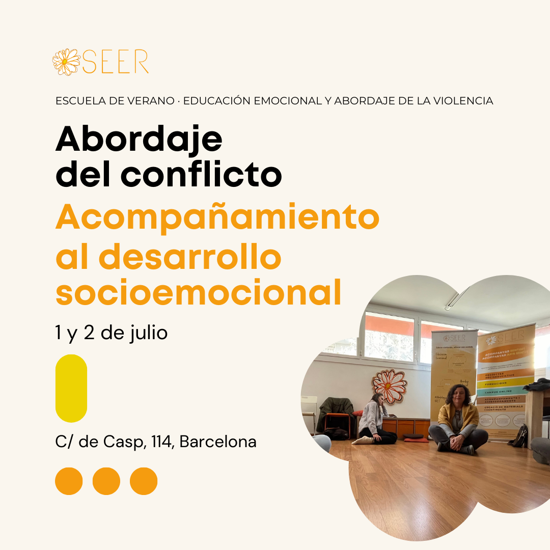 Habiendo hecho esta mirada al conflicto en un primer día de formación, la Escuela de Verano del Equip SEER nos propone enfocarnos en el acompañamiento al desarrollo socioemocional de las personas, que, de hecho, es un elemento clave en la prevención del acoso. Cuando promovemos la educación emocional, inevitablemente estamos fomentando patrones relacionales más equilibrados y respetuosos.