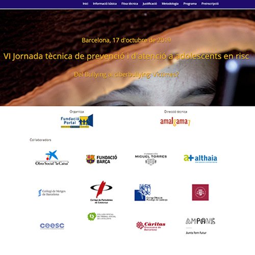 VI Jornada técnica de prevención y atención a adolescentes en riesgo: "Del Bullying al ciberbullying: Víctimas?", organizada por Fundación Portal y Amalgama7. El 17 de octubre de 2019 en el Auditorio Cosmocaixa de Barcelona. Con el objetivo de generar un debate interdisciplinario intervienen administraciones públicas, organizaciones y servicios del ámbito de la salud, entidades, centras escolares y universidades, tercer sector, empresas del sector tecnológico, etc. Participación de expertos y asistentes a la Jornada.