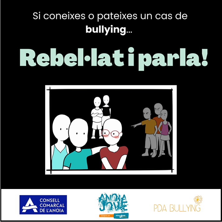 ¡Rebelate y habla! Pasa de espectador, a REspectador! es una campaña del Consell Comarcal de l'Anoia que impulsa una acción de sensibilización centrada en el rol del espectador/observador, en el marco de la Comisión comarcal de prevención, detección e intervención ante el acoso entre iguales de l'Anoia.