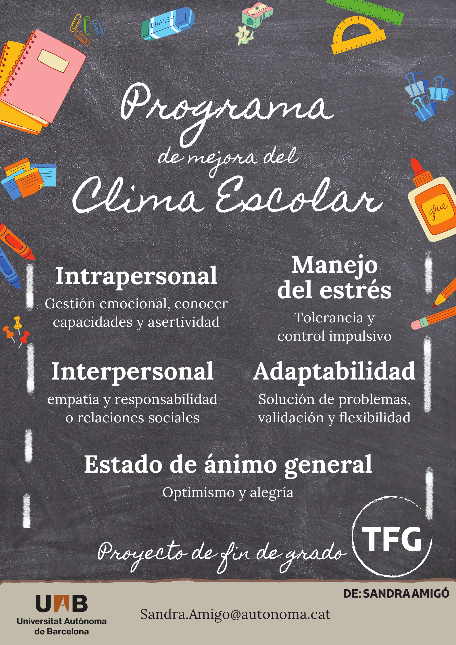 El “Programa CrimiCEHa” es un trabajo de final de grado realizado en 2023 por Sandra Amigó Trujillo, una alumna de criminología de la Universidad Autónoma de Barcelona. El proyecto presenta una propuesta de programa, a través de la metodología ApS (Aprendizaje y servicio), basada en justicia restaurativa y el desarrollo de habilidades emocionales (educación emocional) para la mejora del clima escolar.